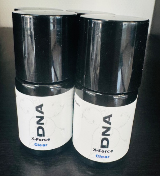 X force clear, makkelijk aan te brengen en uit te harden 1 minuut in de LED en 2 minuten in de UV. TPO free
